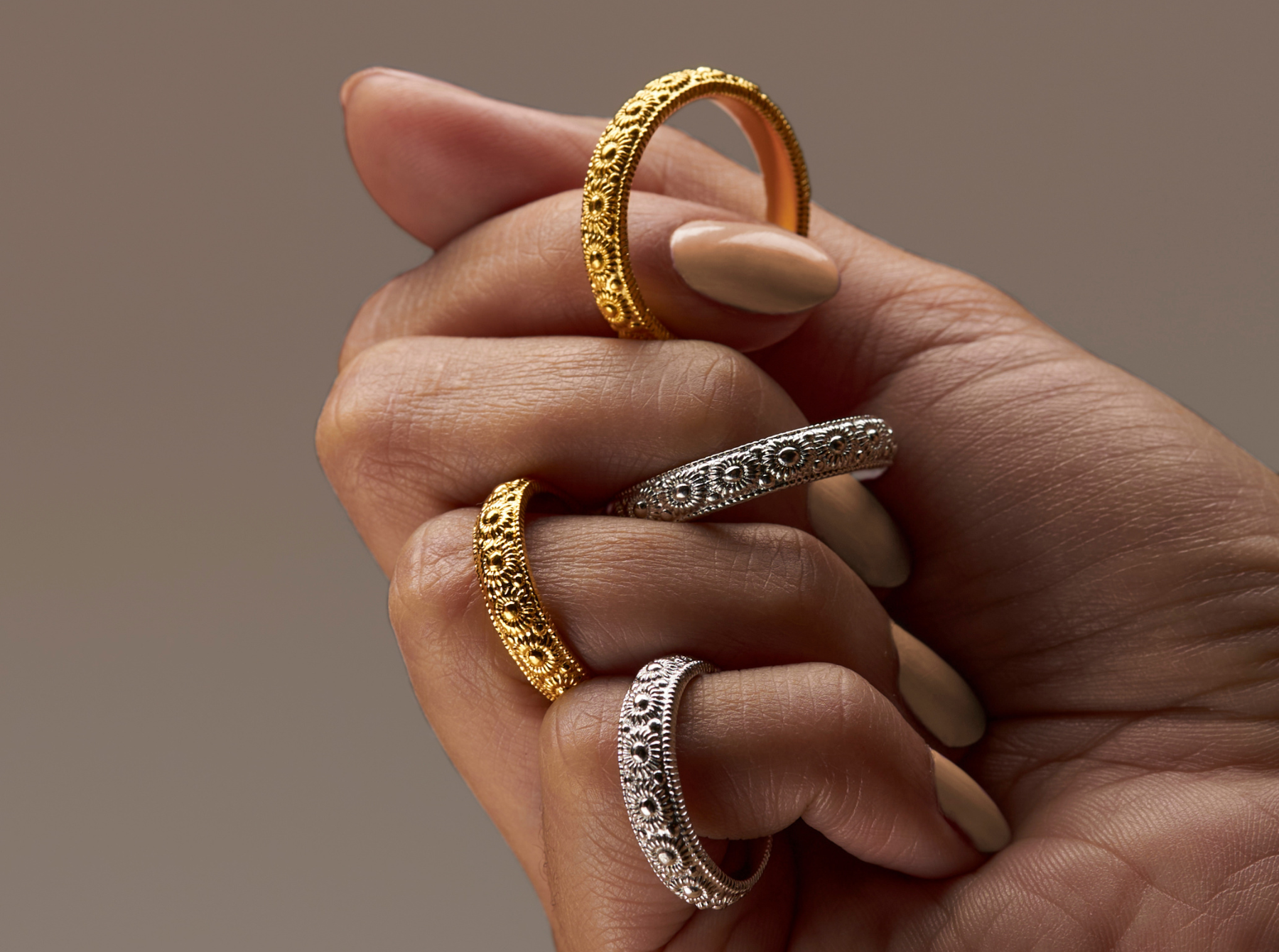 Play with Texture: Incorporating different textures can enhance the effect of mixed metals. Pairing a pure platinum bracelet with 24k gold ring adds visual interest and prevents the metals from blending into each other. Don’t be afraid to mix light and heavy styles for a more dynamic look.